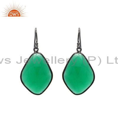 Handmade Oxidized Sterling Silver Green Onyx Gemstone Bezel Set Drop Earrings