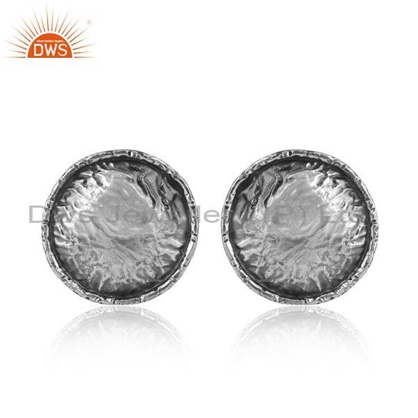 Handmade Oxidized Sterling Silver Round Textured Earrings