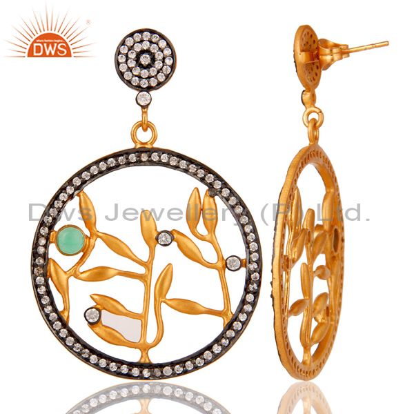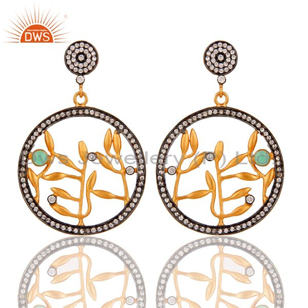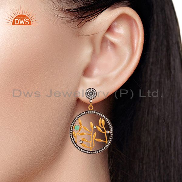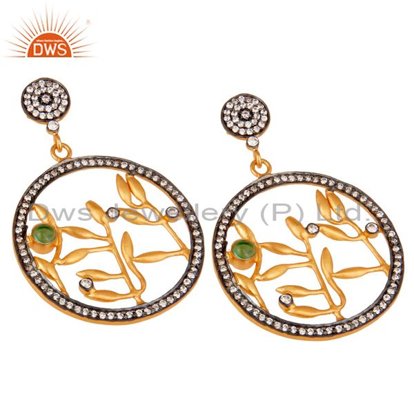 Handmade Pave Zircon 18 k Yellow Gold Plated Fashion Dangle Earrings