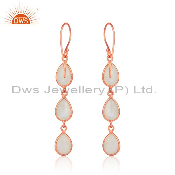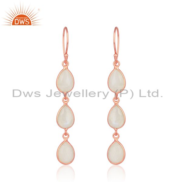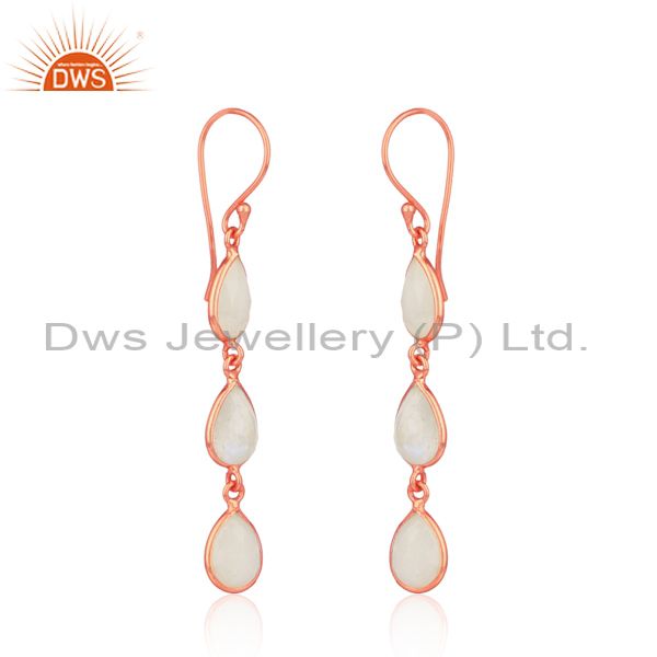 Handmade Rainbow Moonstone Dangle in Rose Gold on Silver