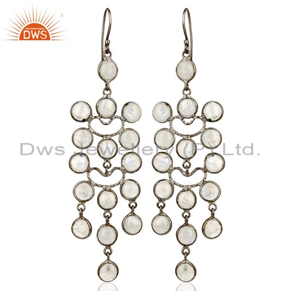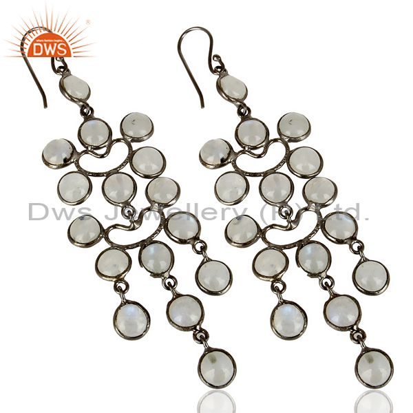 Handmade Rainbow Moonstone Designer Chandelier Earrings In Oxidized Brass