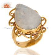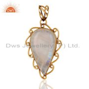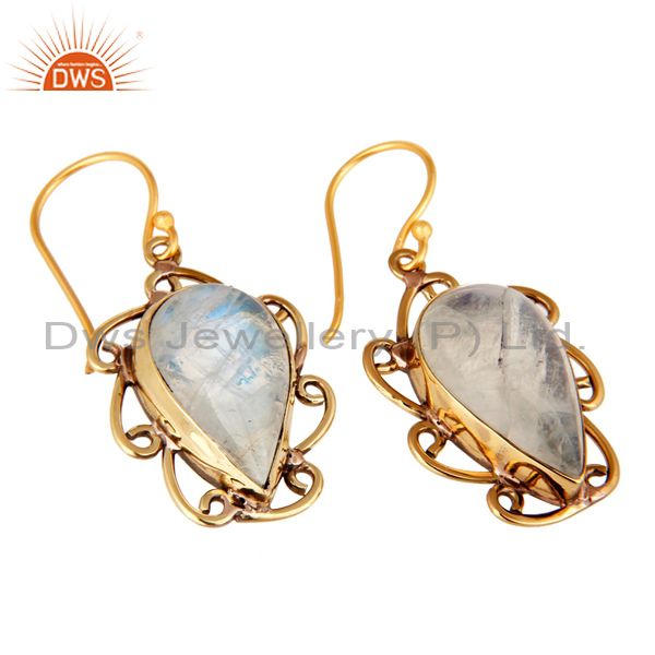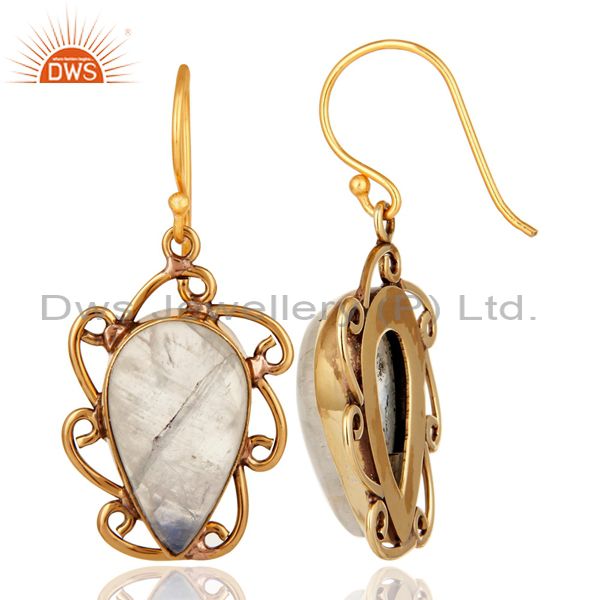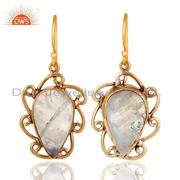 Handmade Rainbow Moonstone Designer Earrings Made In 18K Gold On Brass