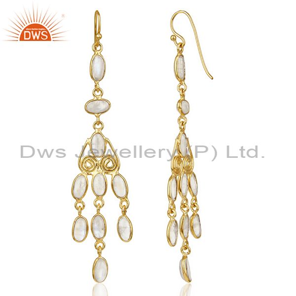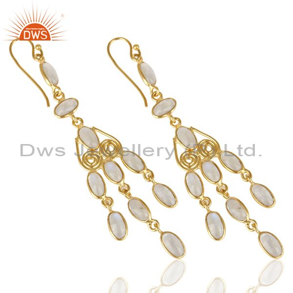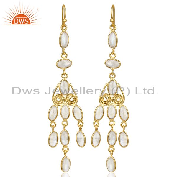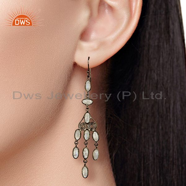 Handmade Rainbow Moonstone Fashion Dangle Earrings In Oxidized Brass