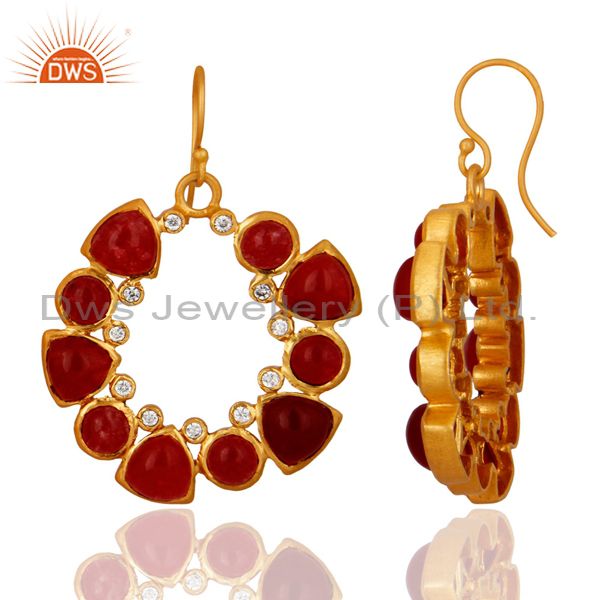 Handmade Red Aventurine And Cubic Zirconia Gold Plated Designer Earrings