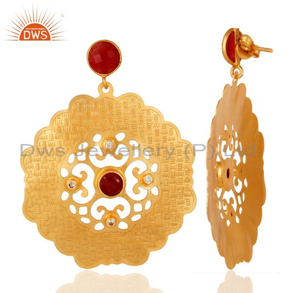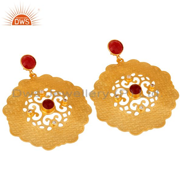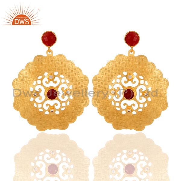 Handmade Red Aventurine Gemstone 14K Yellow Plated Designer Earrings For Her