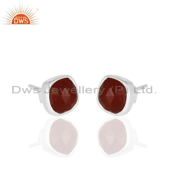 Handmade Red Onyx Gemstone 925 Silver Custom Stud Earring Jewelry Manufacturer