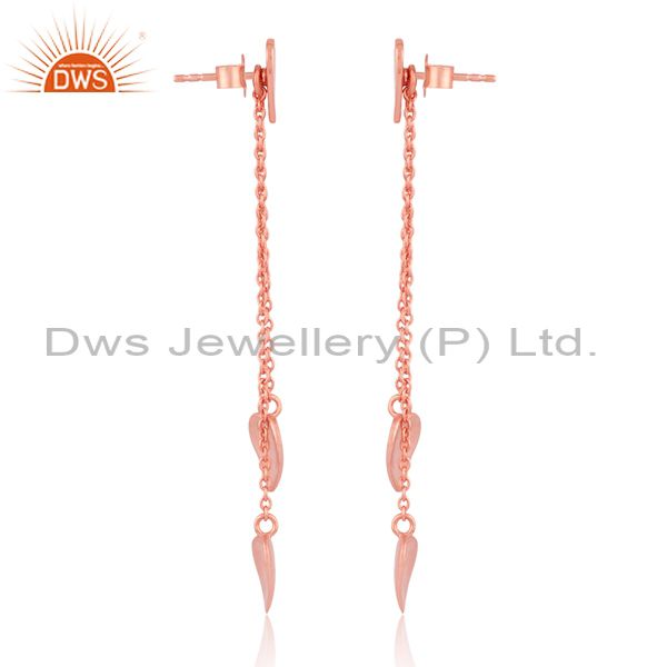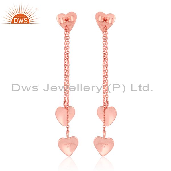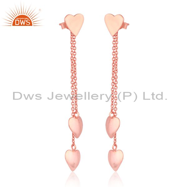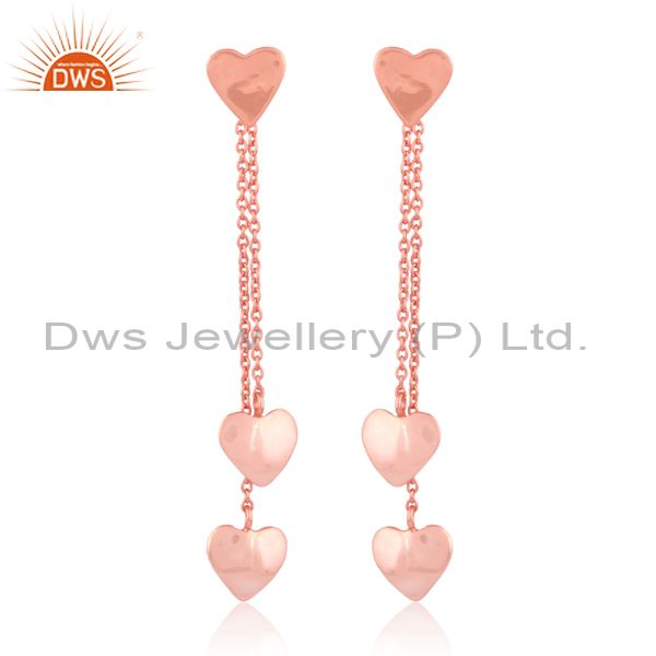 Handmade Rose Gold On Silver Long Drop Heart Charm Earrings