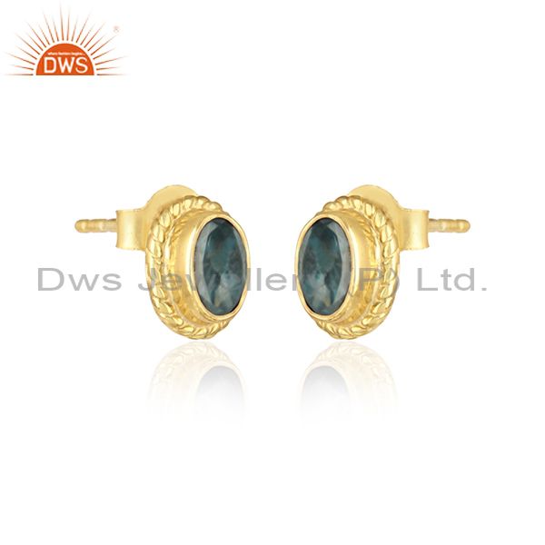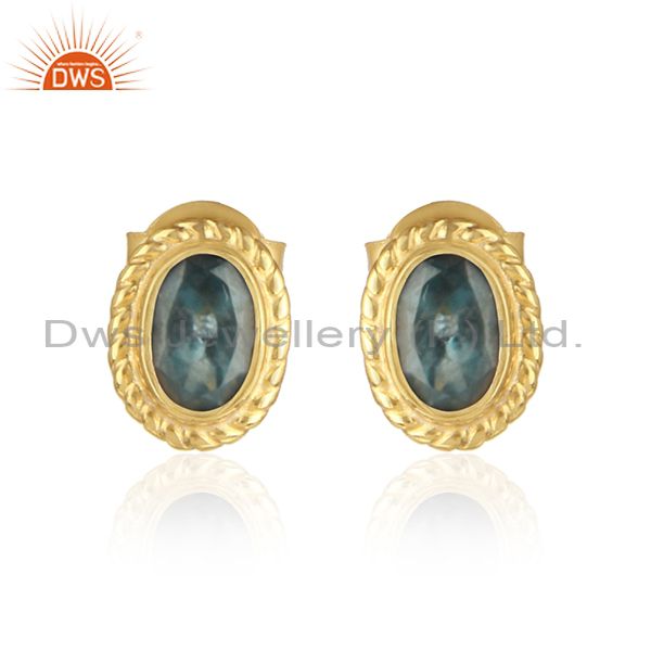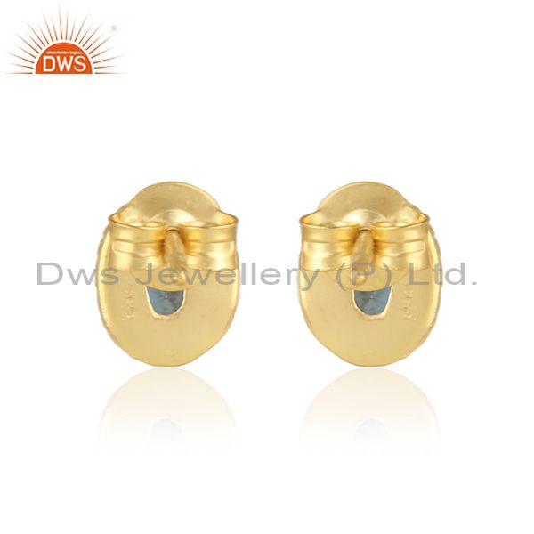 Handmade Silver Earring With London Blue Topaz And Yellow Gold On