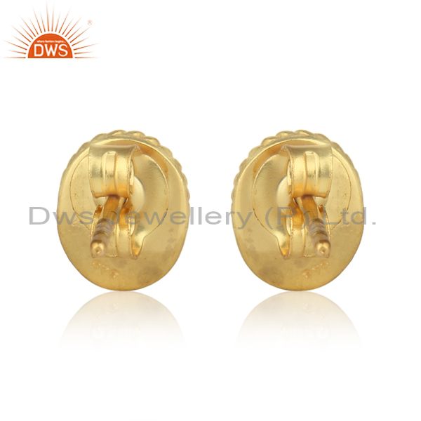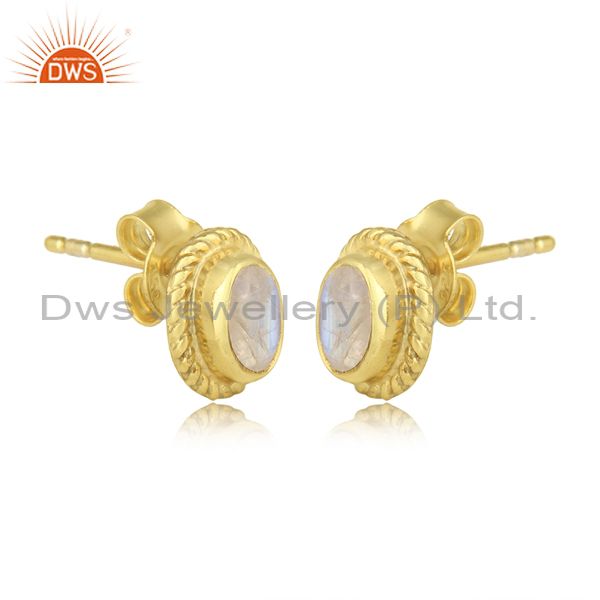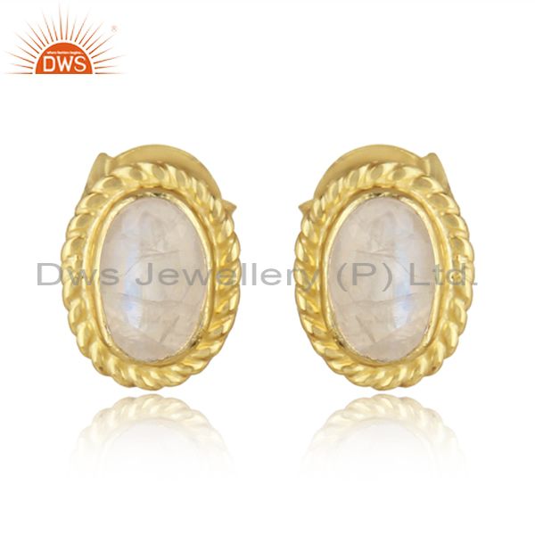 Handmade Silver Earring With Rainbow Moonstone And Yellow Gold On