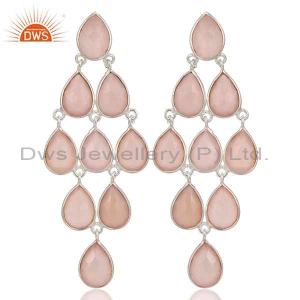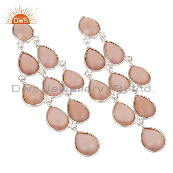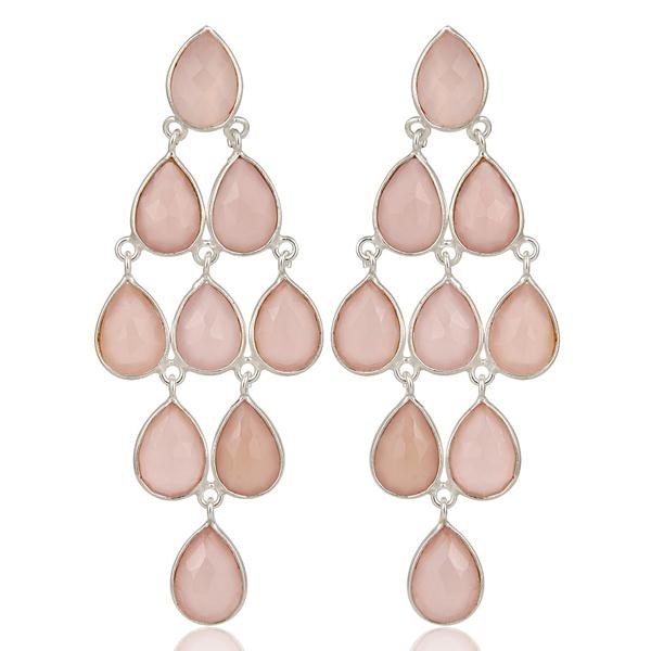 Handmade Solid 925 Sterling Silver Chalcedony Wedding Chandelier Drops Earrings