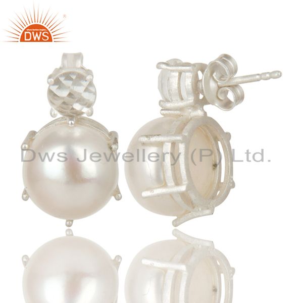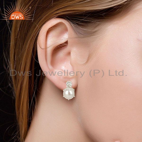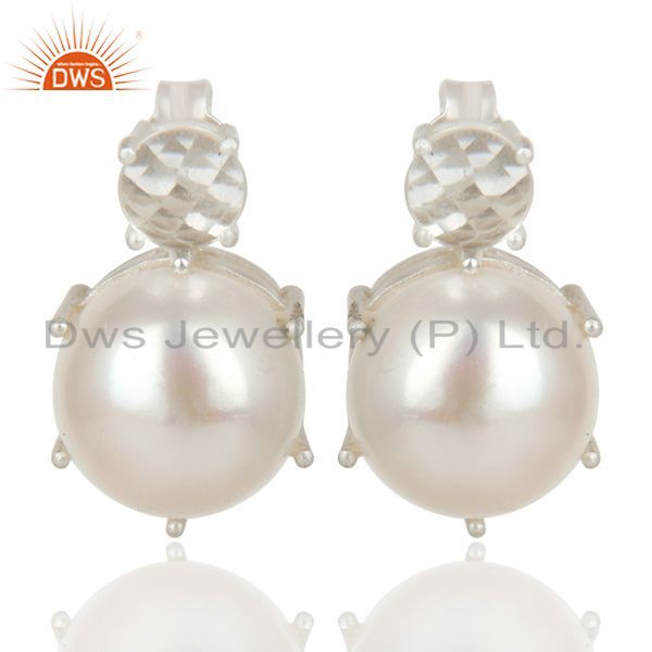 Handmade Solid 925 Sterling Silver Crystal Quartz & Pearl Beads Studs Earrings
