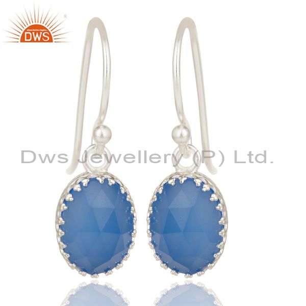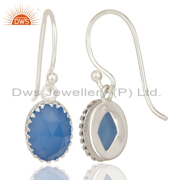 Handmade Solid 925 Sterling Silver Dyed Blue Chalcedony Drops Earrings Jewelry