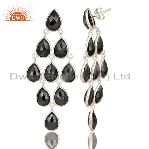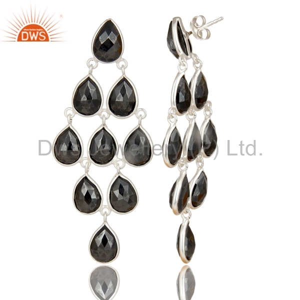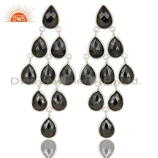 Handmade Solid 925 Sterling Silver Faceted Hematite Dangle Earrings Jewelry
