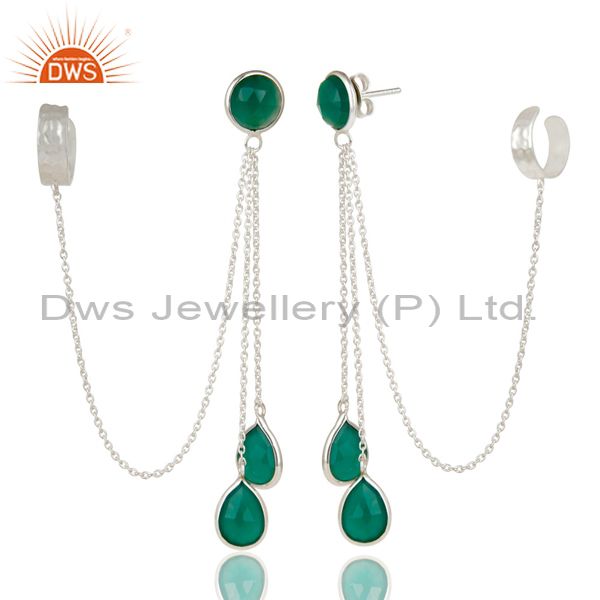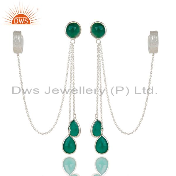 Handmade Solid 925 Sterling Silver Green Onyx Chain Chandelier Ear Cuff Jewelry