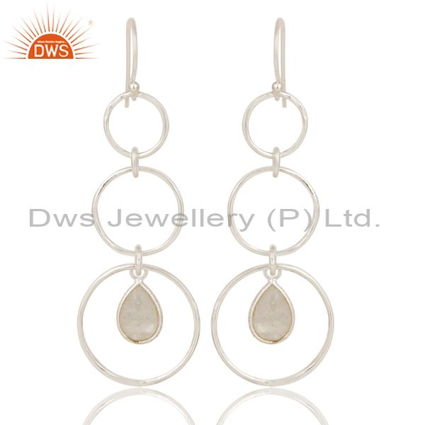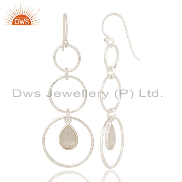 Handmade Solid 925 Sterling Silver Rainbow Moonstone Bezel Set Drops Earrings
