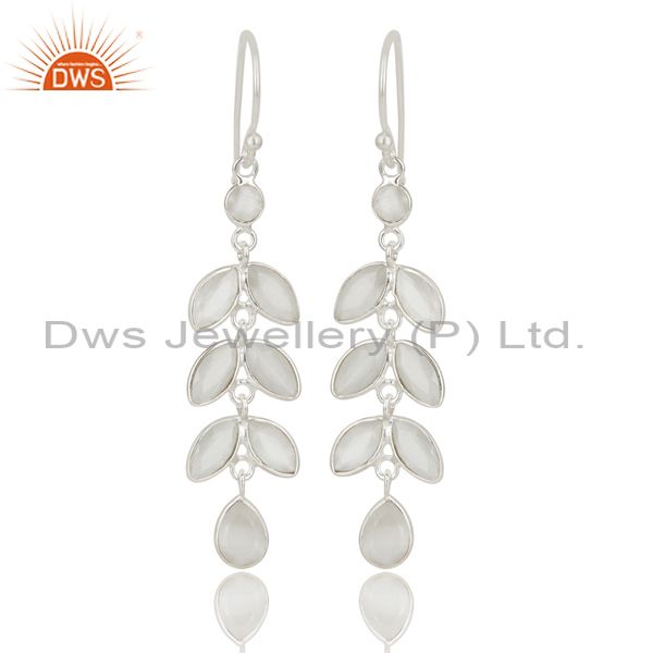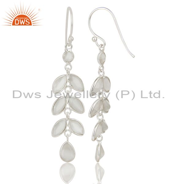 Handmade Solid 925 Sterling Silver White Moonstone Bezel Set Dangle Earrings