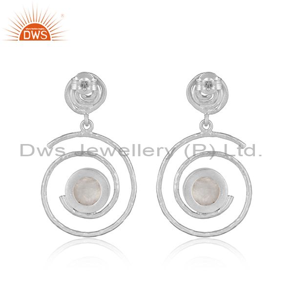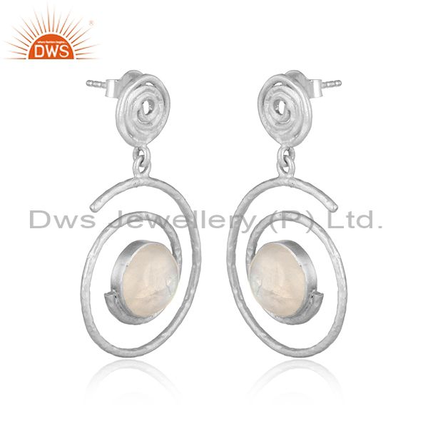 Handmade Spiral Dainty Sterling Silver Dangle with Rainbow Moonstone