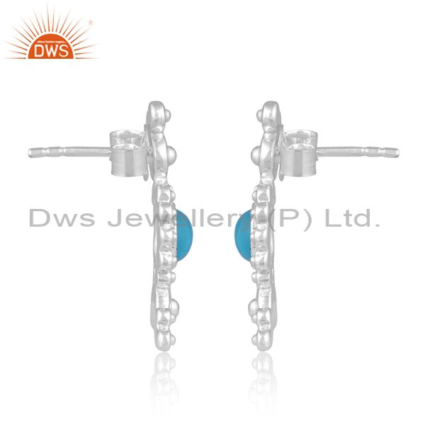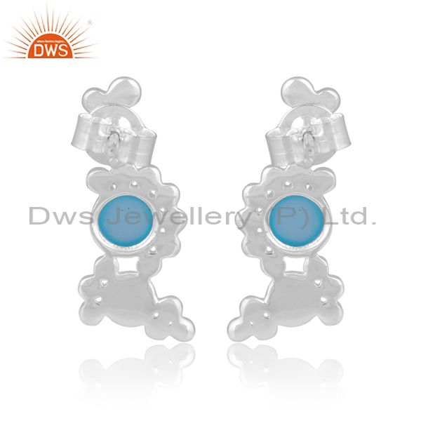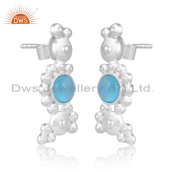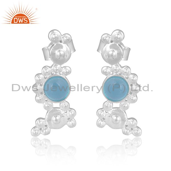 Handmade Sterling Fine Silver Aqua Chalcedony Stud Earrings
