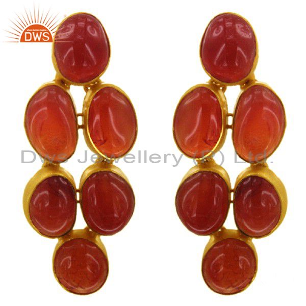 Handmade Sterling Silver Carnelian Gemstone Earrings With 18K Gold Plated