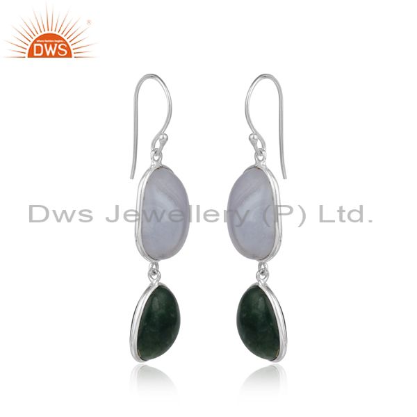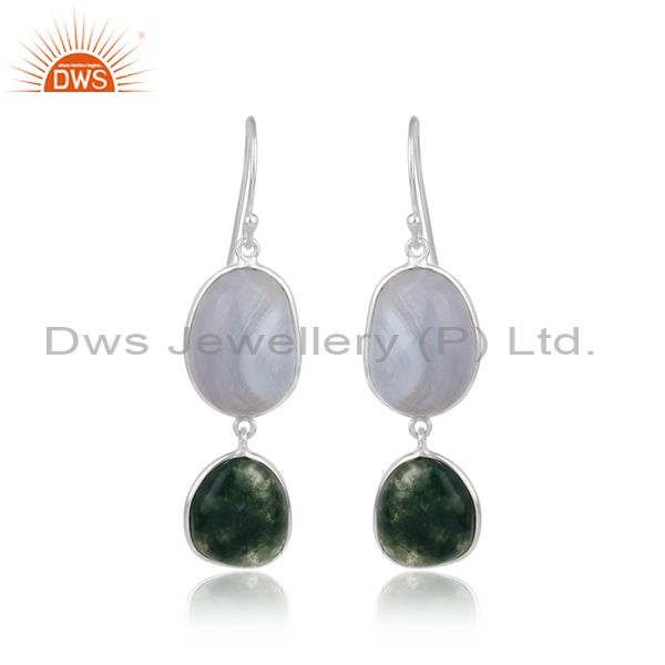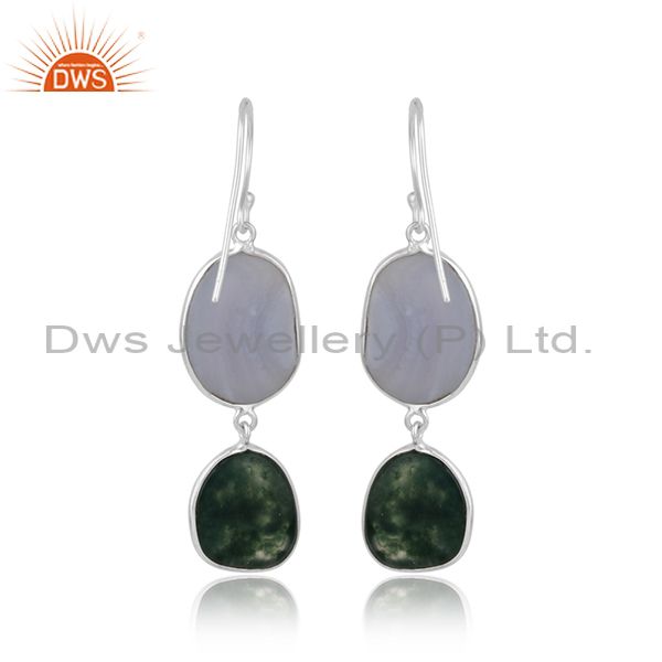 Handmade Sterling Silver Dangle with Blue Lace and Green Moss Agate