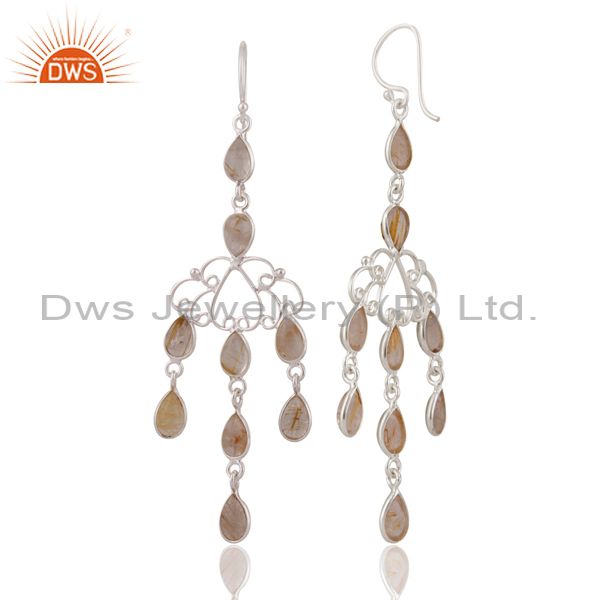 Handmade Sterling Silver Golden Rutilated Quartz Gemstone Chandelier Earrings