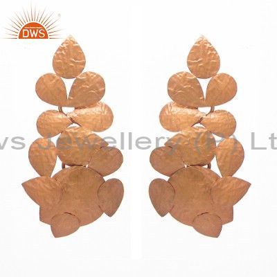 Handmade Sterling Silver Multi Leaves Dangle Earrings With 18K Rose Gold Plated