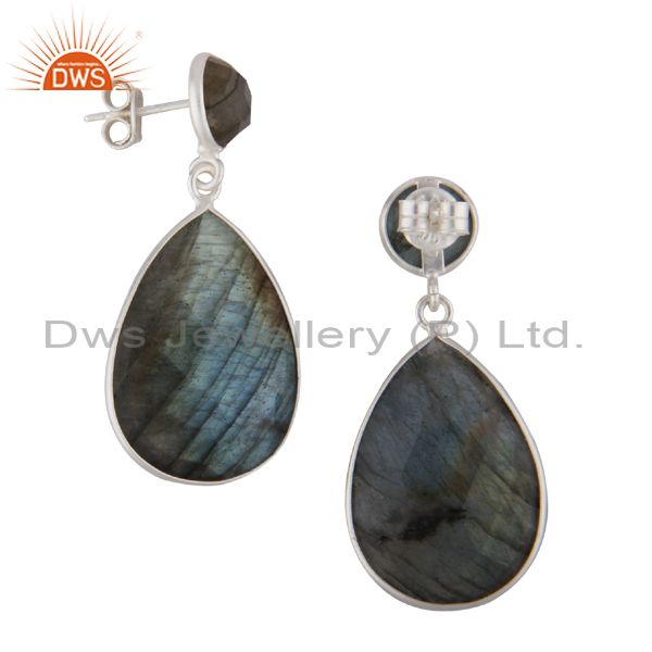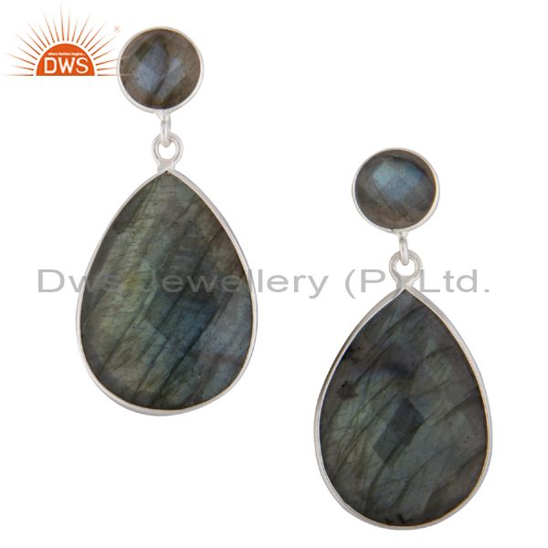 Handmade Sterling Silver Natural Labradorite Gemstone Bezel Set Drop Earrings