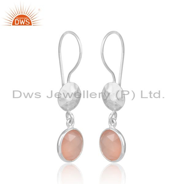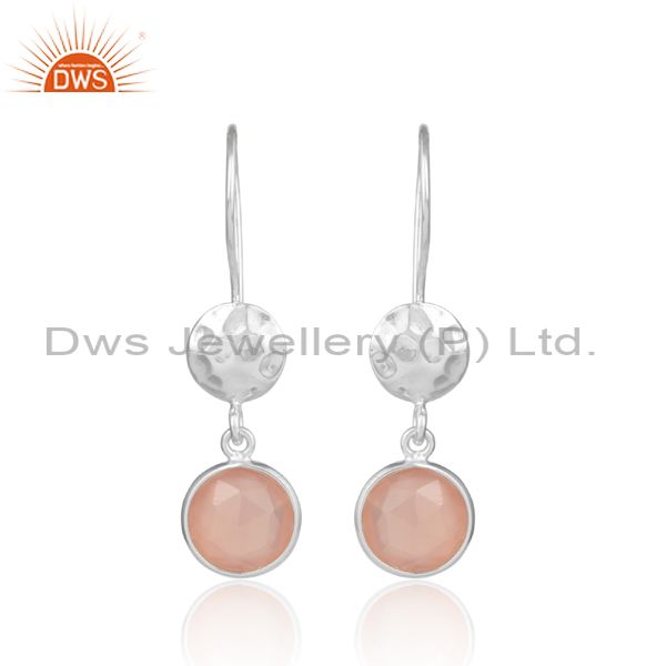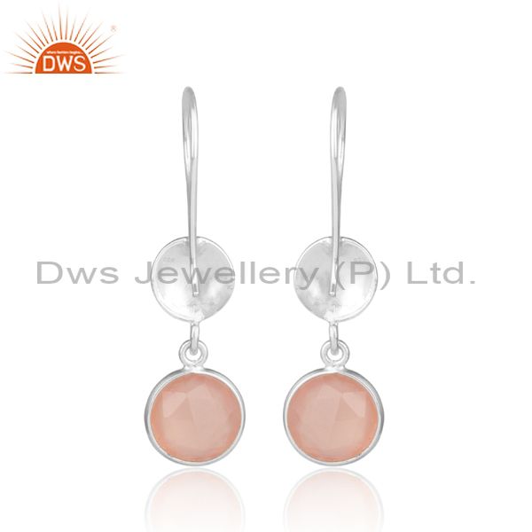 Handmade Sterling Silver Rose Chalcedony Gemstone Dangle Earrings