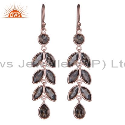 Handmade Sterling Silver Smoky Quartz Gemstone Leaf Design Dangle Earrings