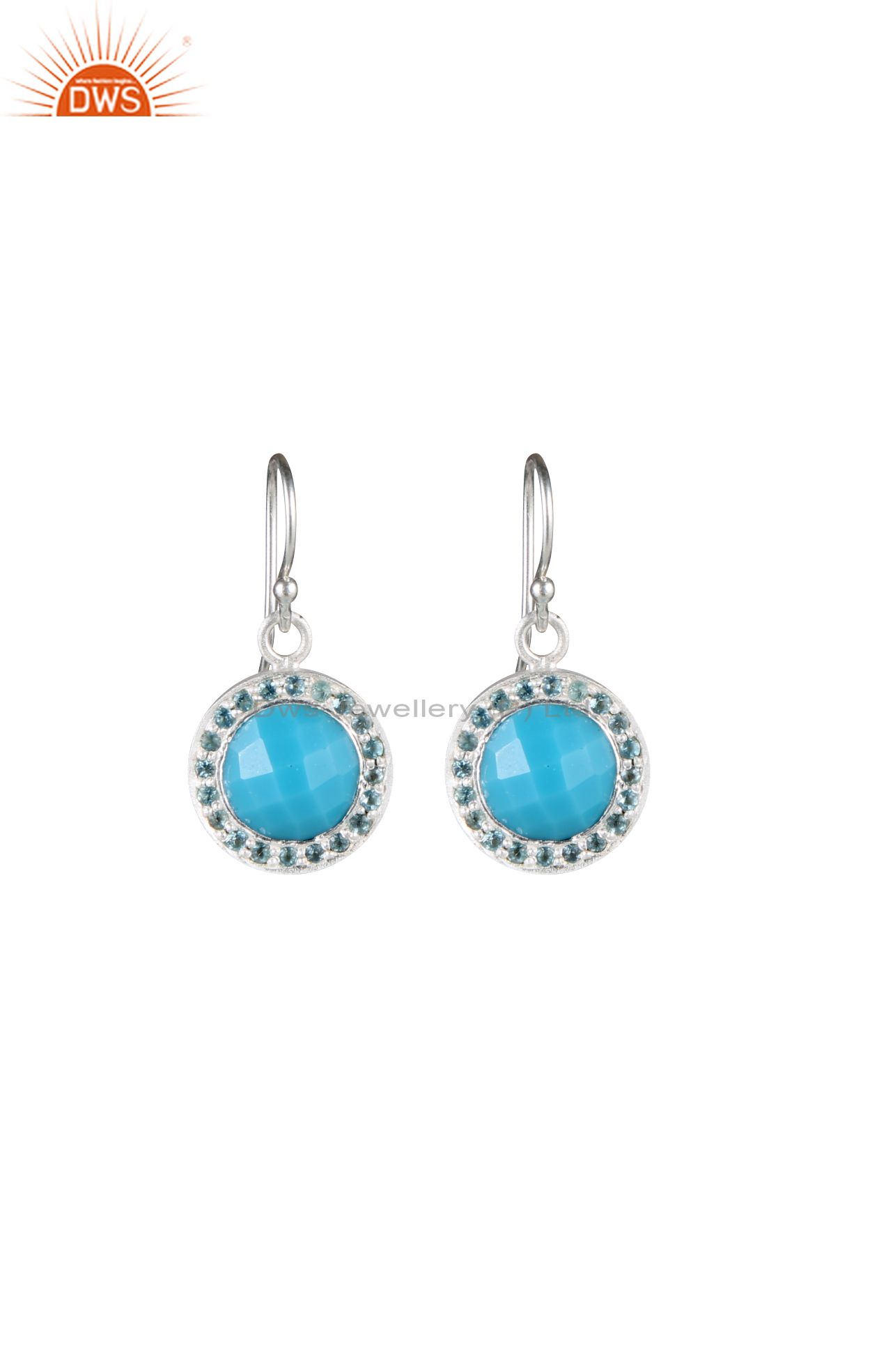 Handmade Sterling Silver Turquoise And Blue Topaz Halo Style Drop Earrings