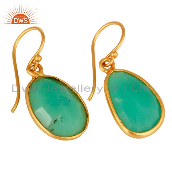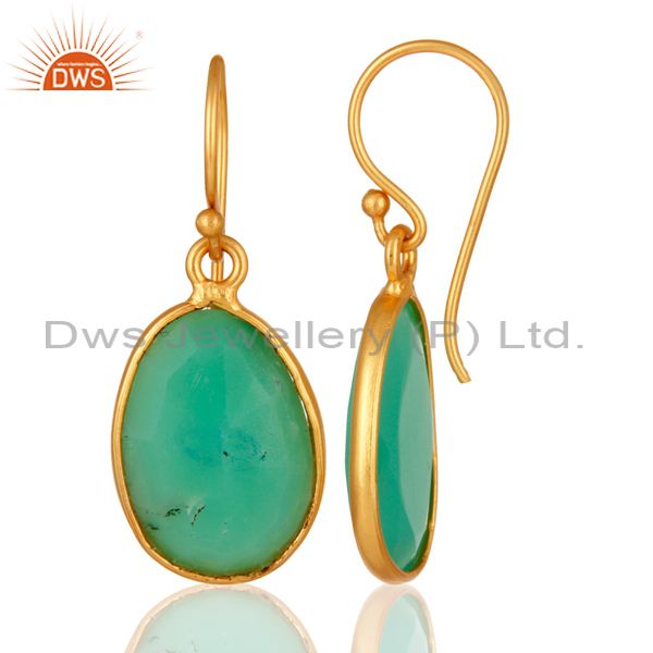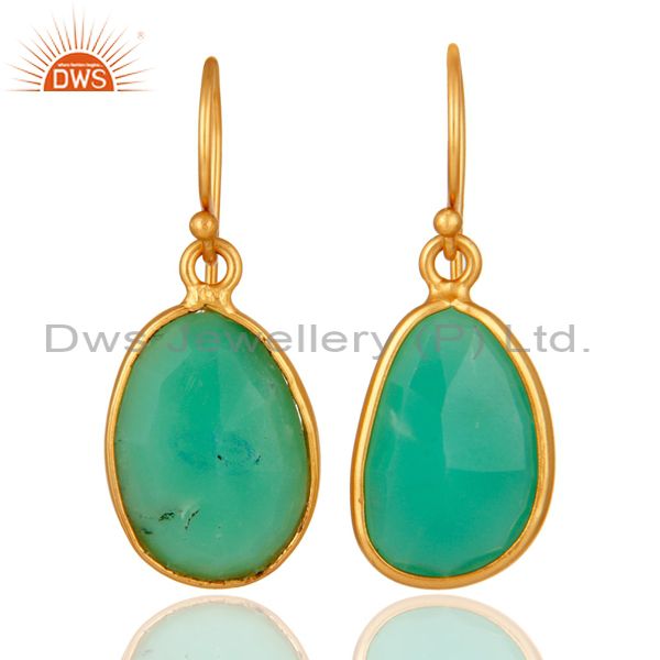 Handmade Sterling Silver With Gold Plated Chrysoprase Bezel Gemstone Earrings