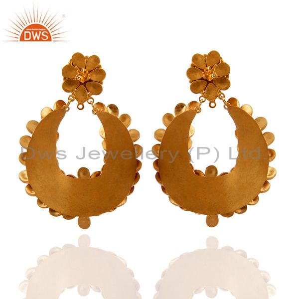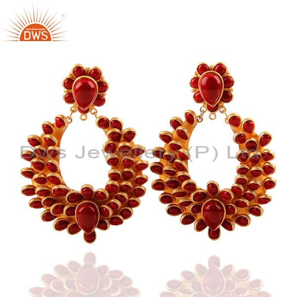 Handmade Synthetic Red Coral Gemstone Gold Plated Brass Earrings