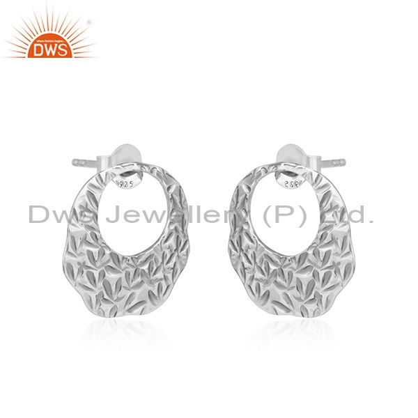 Handmade Texture 925 Sterling Plain Silver Oxidized Earrings Jewelry