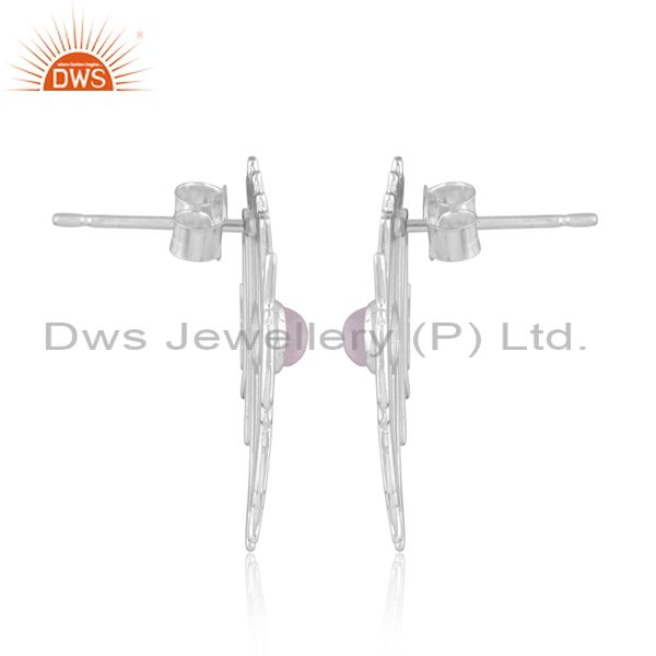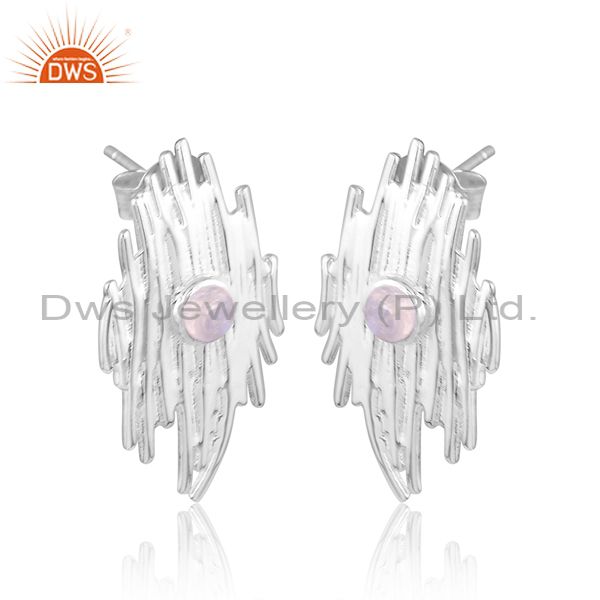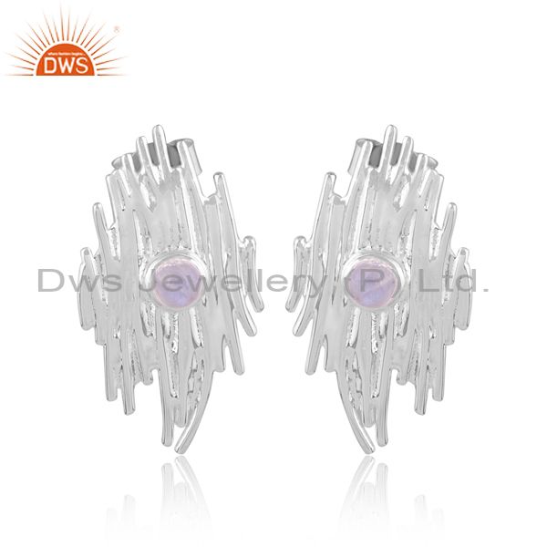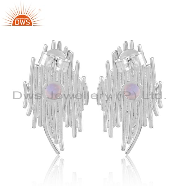 Handmade Texture Sterling Silver Rainbow Moonstone Earrings