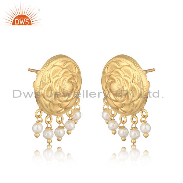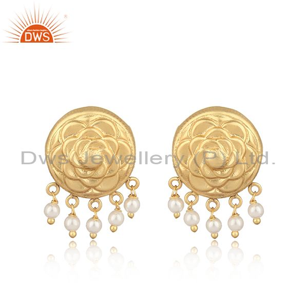 Handmade Traditional Yellow Gold on Fashion Earring with Pearl