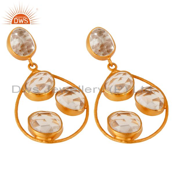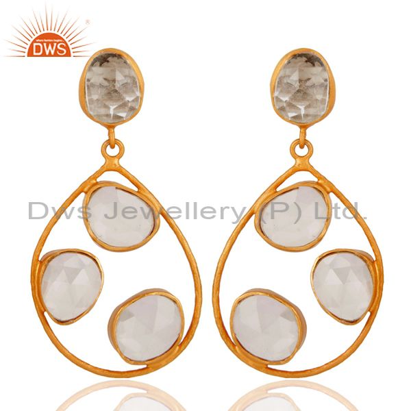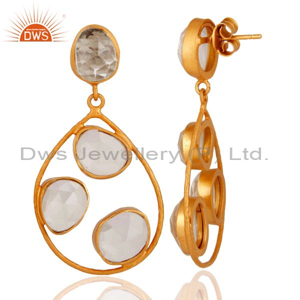 Handmade White Moonstone Plated Gold 925 Sterling Silver Bezel Set Earrings