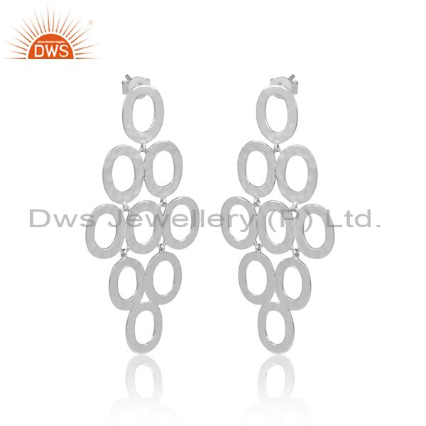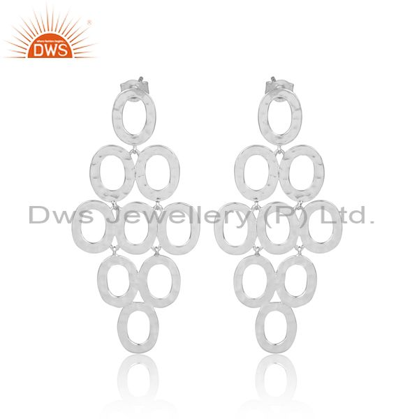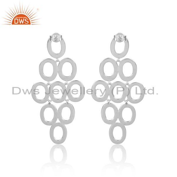 Handmade White Plated Silver Chandelier Long Drop Earrings