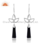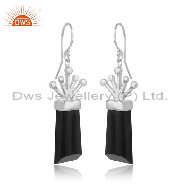 Handmade White Rhodium Plated Silver Black Onyx Gemstone Earrings