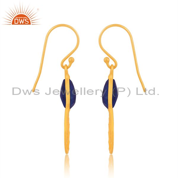 Handmade Yellow Gold Plated Lapis Designer Silver Earrings