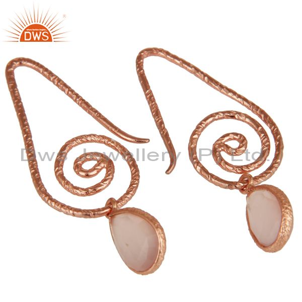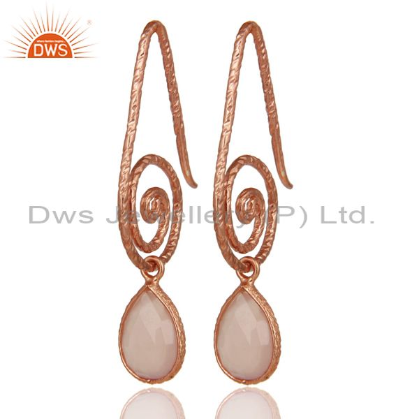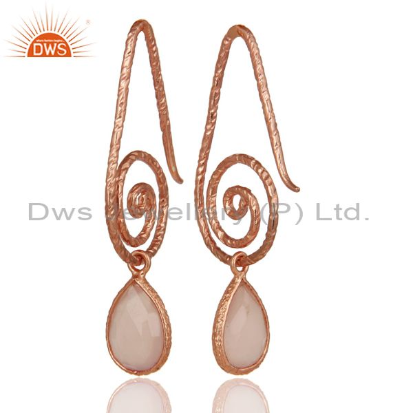 Hang In Hook Style Chalcedony Earrings With 18k Rose Gold Plated 925 Silver