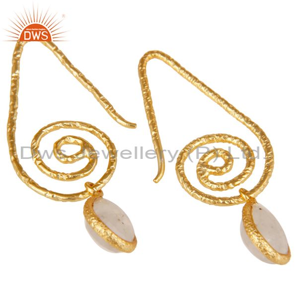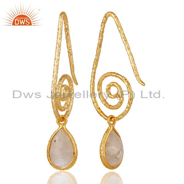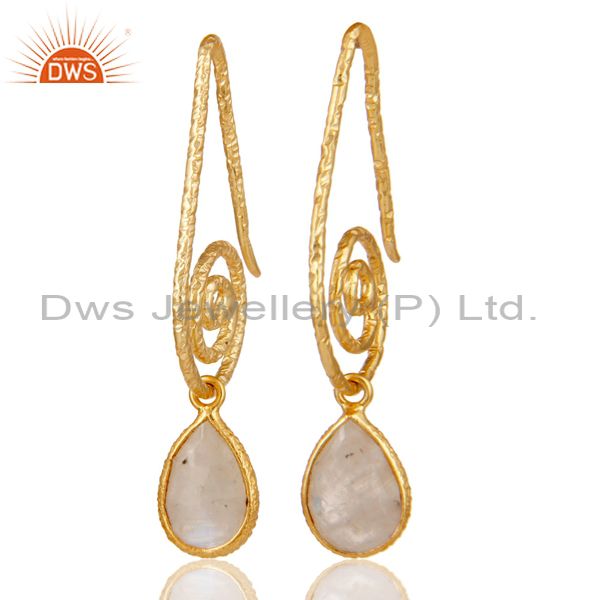 Hang In Hook Style Moonstone Drops Earrings with 18k Gold Plated Sterling Silver