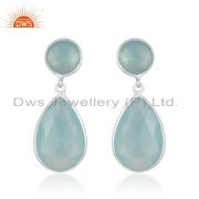 Heart 925 Sterling Silver Aqua Chalcedony Gemstone Dangle Earrings Wholesale