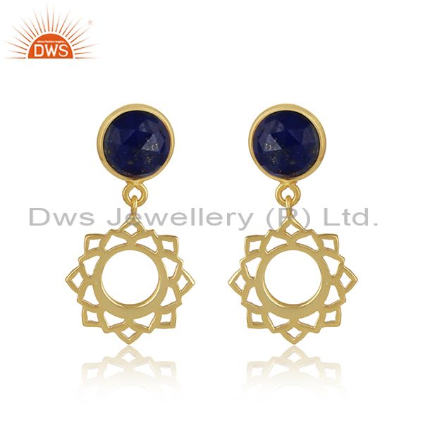 Heart Chakra Dangle Earring in Yellow Gold on Silver with Lapis