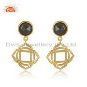 Heart Chakra Earring in Yellow Gold on Silver with Labradorite