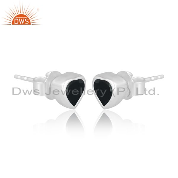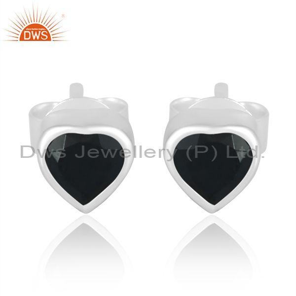 Heart Cut Black Spinal Stone Silver Stud For Women Valentine