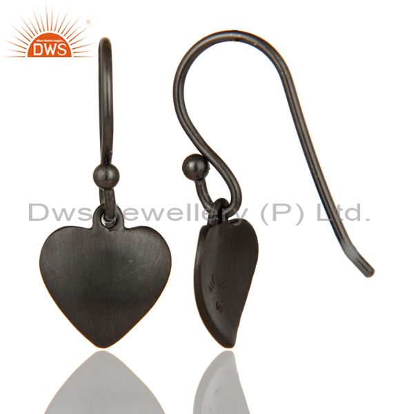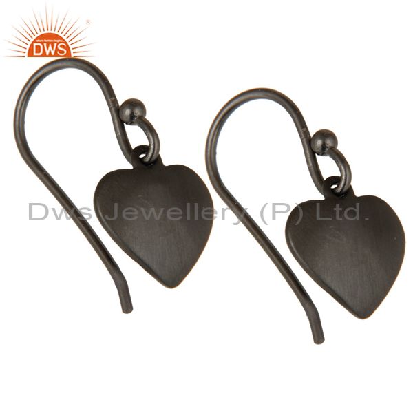 Heart Design Black Rhodium Plated Sterling Silver Handmade Earrings