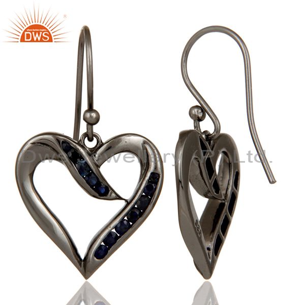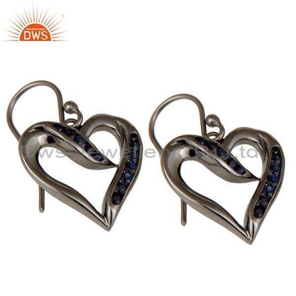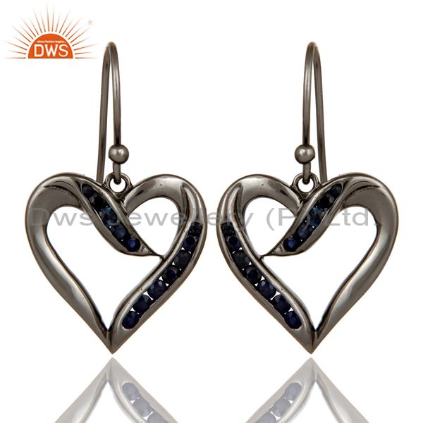 Heart Shape Earring Blue Sapphire and Oxidized Sterling Silver Designer Earring