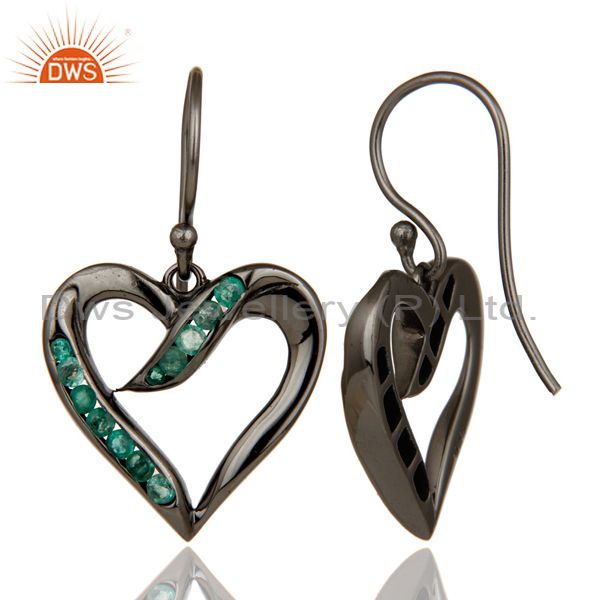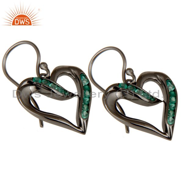 Heart Shape Earring Emerald and Oxidized Sterling Silver Designer Earring