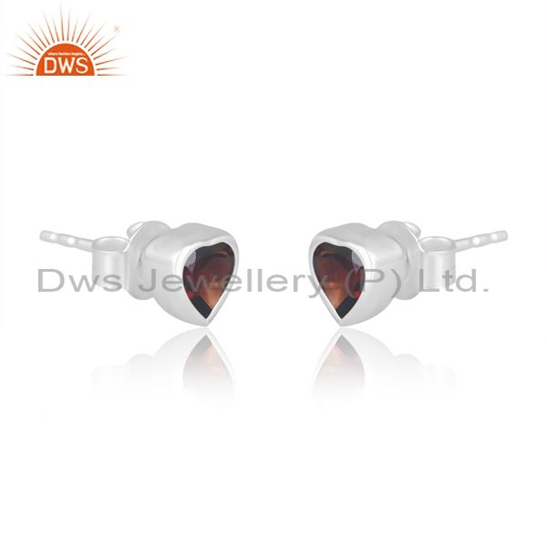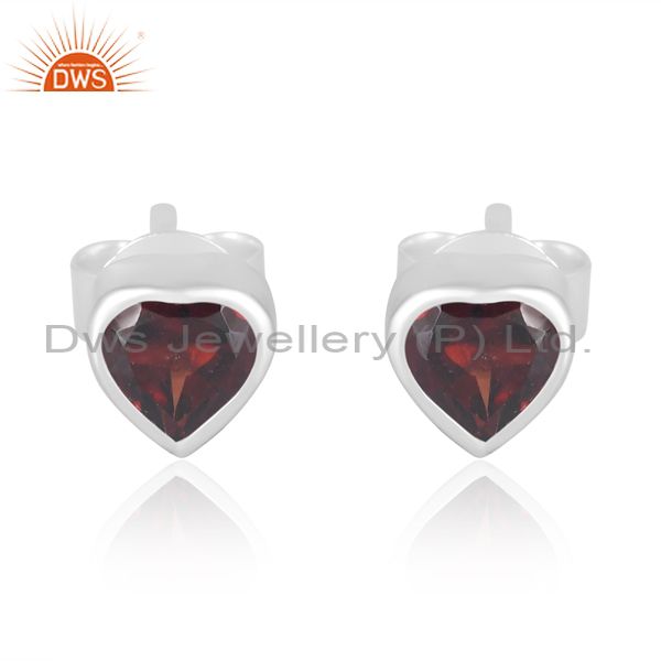 Heart Valentine's Silver Stud With Garnet Cut For Women