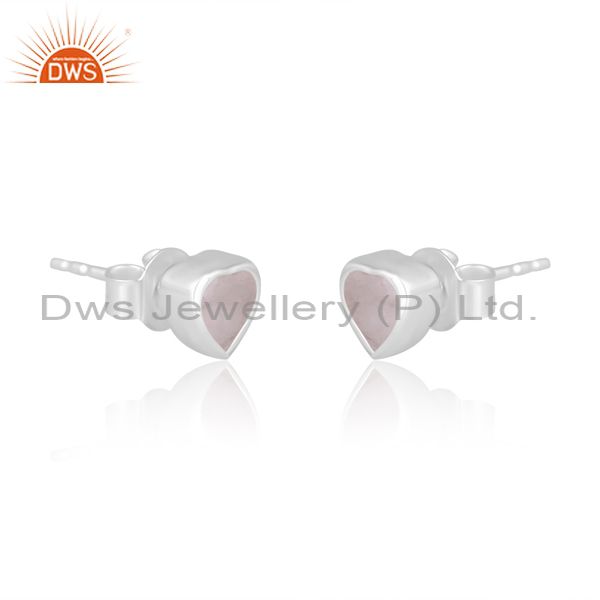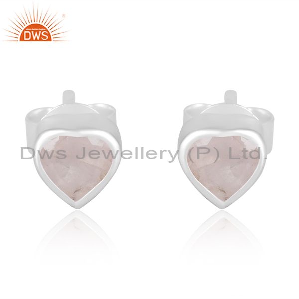Heart Valentine's Silver Stud With Rose Quartz Cut For Women